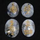 Natural Crystal / Stone Rainbow Monnstone Reiki Symbol Engraved Set of 4 pc