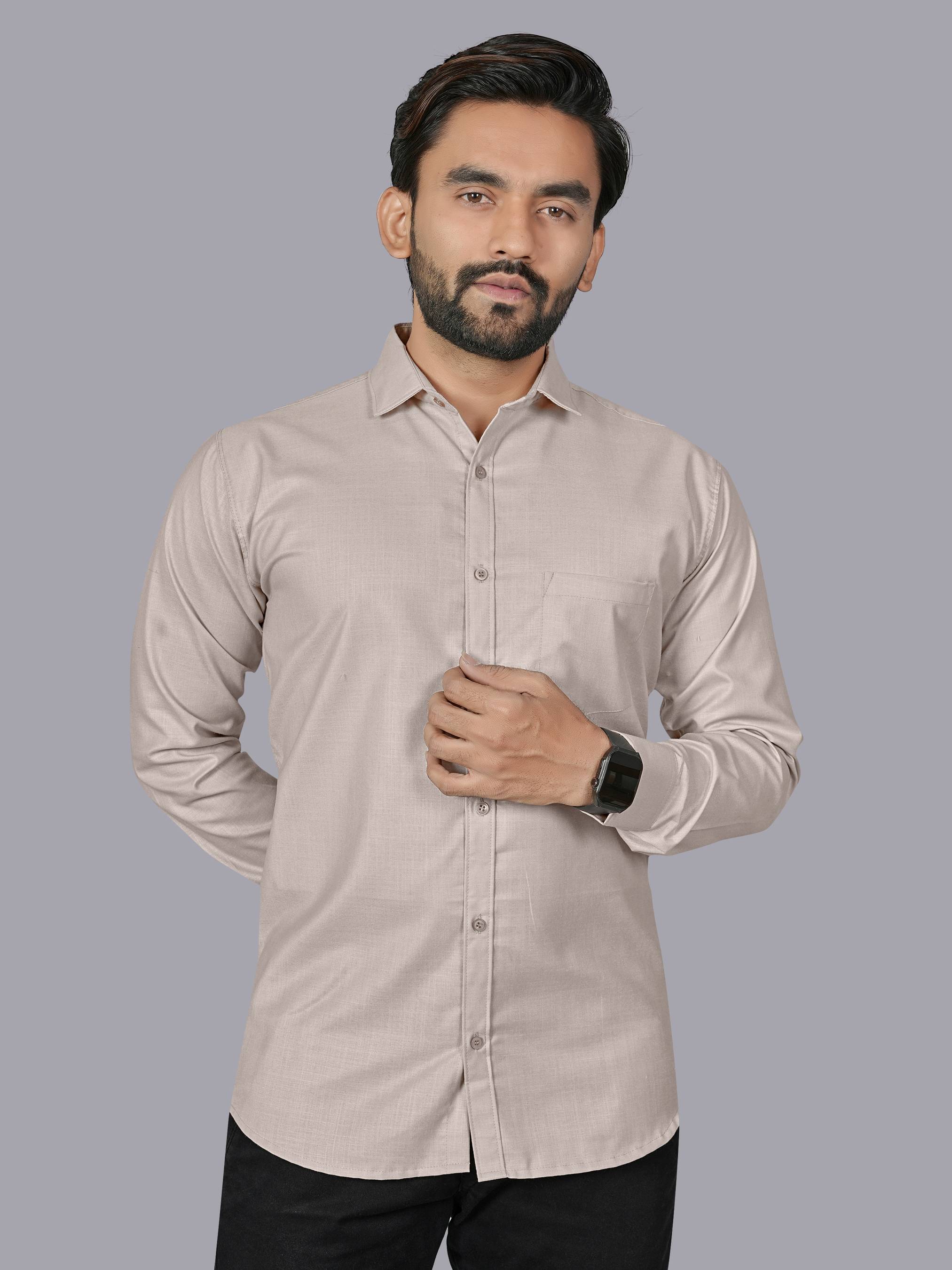 Men’s plain cotton full-sleeve shirt combines comfort, breathability, and classic style. Made from 100% premium cotton fabric, it offers a soft, lightweight, and skin-friendly feel that keeps you comfortable throughout the day.Plain solid finish for a versatile, minimalist look.Regular fit for easy movement and classic style.Classic collar with button-down front.Stylish and comfortable casual option.lim-fit variant with a modern touch.Easy machine wash and gentle ironing recommended.