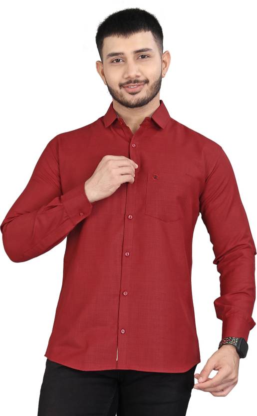 REJOI Men Slim Fit Solid Spread Collar Casual Shirt