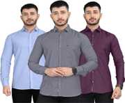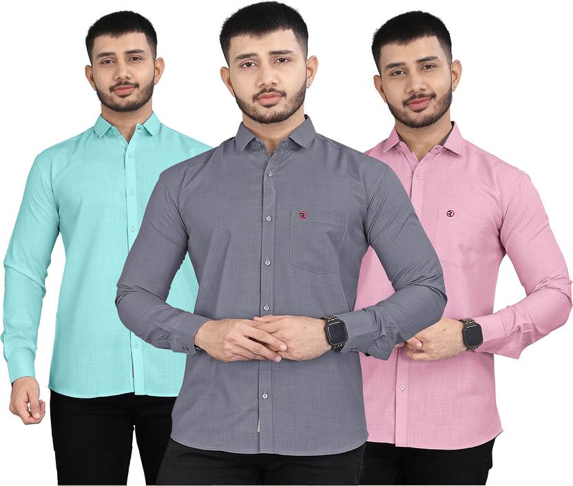 REJIO Men Solid Casual Light Green, Grey, Pink Shirt (Pack of 3)