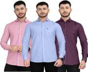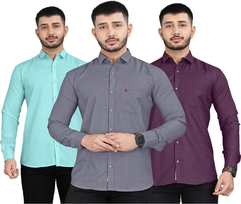 REJIO Men Solid Casual Light Green, Grey, Purple Shirt (Pack of 3)