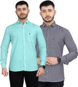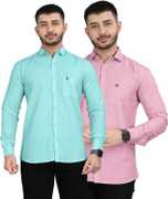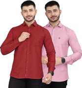 REJOI Men Slim Fit Solid Spread Collar Casual Shirt (Pack of 2)