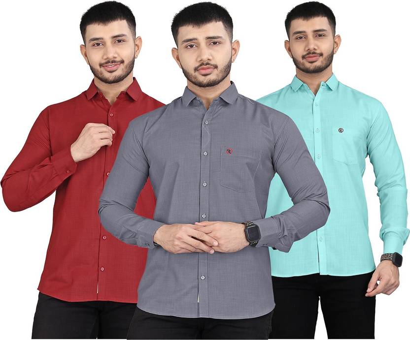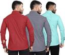 REJOI Men Solid Casual Maroon, Grey, Light Green Shirt (Pack of 3)