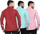 REJOI Men Solid Casual Maroon, Light Green, Pink Shirt (Pack of 3)