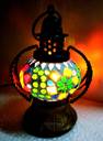 REKENSA Multicolor Glass, Iron, Wooden Hanging Lantern (18 cm X 12 cm, Pack of 1)