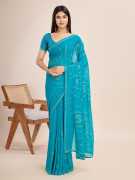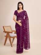 The RekhaManiyar Wine Poly Georgette Embroidered Saree features elegant floral embroidery, showcasing sophistication and grace. Paired with an unstitched solid blouse, it offers versatility for various occasions.