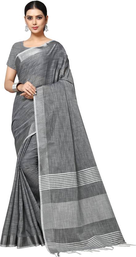 RekhaManiyar Solid/Plain Bollywood Cotton Linen Saree (Grey)