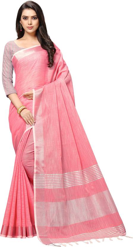 RekhaManiyar Solid/Plain Bollywood Cotton Linen Saree (Red)