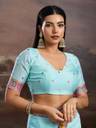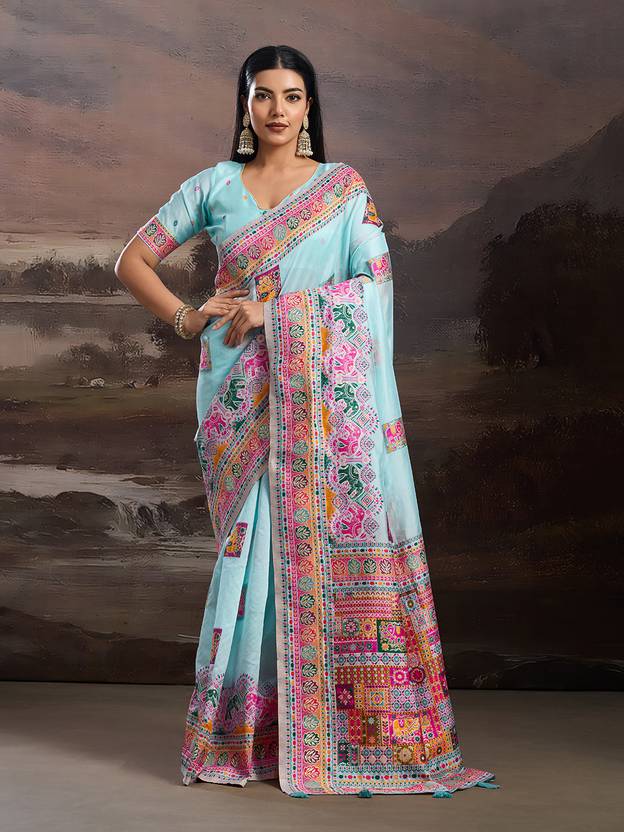 Elevate your wardrobe with the Rekha Maniyar Blue Silk Cotton Kalamkari Woven Saree, a masterpiece of elegance and tradition. This exquisite saree features a luxurious blend of silk and cotton, offering a perfect balance of comfort and sophistication. The intricate Kalamkari design, handwoven by skilled artisans, showcases a rich tapestry of cultural artistry, making each piece unique. The saree's vibrant blue hue is complemented by delicate tassels on the pallu, adding a touch of playful charm. Paired with an unstitched woven blouse, it allows for personalized tailoring to suit your style. Ideal for festive occasions or elegant gatherings, this saree promises to make you the center of attention. Experience the allure of timeless fashion with this stunning ensemble, where tradition meets contemporary flair. Indulge in the luxury of handcrafted beauty and make a statement that resonates with grace and poise.