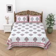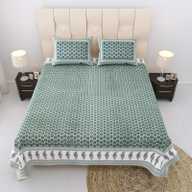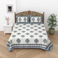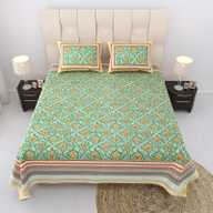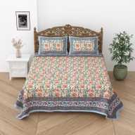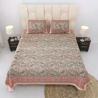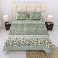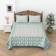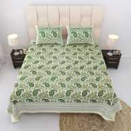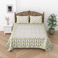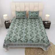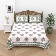 Relaxfeel Cotton Single Flat 244 TC Floral Bedsheet (Pack of 1, WhiteGreen Patta)