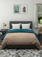 Relaxfeel Solid Double Comforter for Heavy Winter (Poly Cotton, Patrol Blue & Beige)