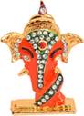 Relicon Lord Ganesh Idol | Ganesha Idol | Ganpati Vinayaka (Design-14) Orange Metal Statue for Car Dashboard | Mandir Pooja Murti | Temple Puja | Home Decor | Office Table Showpiece (LBH-3.5 x 0.3 x 5.5 Cm) Decorative Showpiece - 5.5 cm (Metal, Orange, Gold)