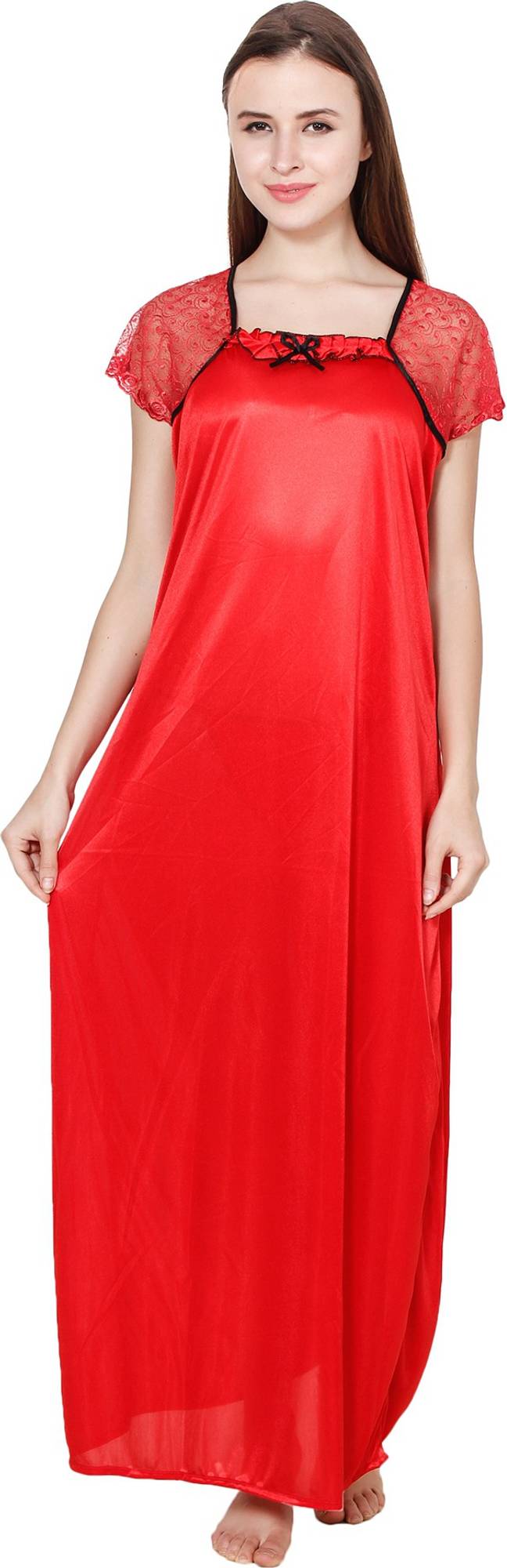 Material: Satin Premium Nighty, X-Large-Size: Chest over Bust- 44 Inch,Hips-46 Inch, Length-55 Inch