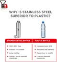 Renberg 1000 ml Steel Bottle (Pack of 2, Silver)