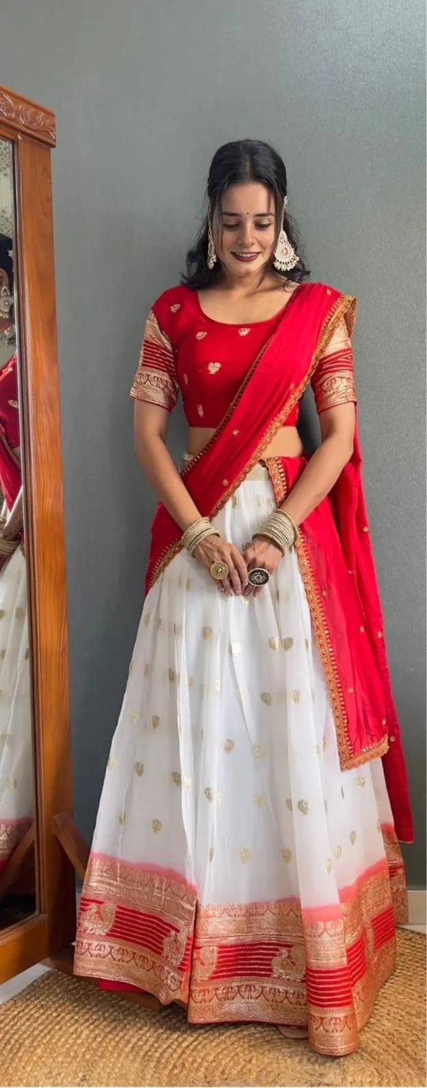 rendol Solid Semi Stitched Lehenga Choli (White)