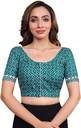 The blouse is meticulously stitched around the hemline and the sides. The firm stitching does not wear away and keeps the blouse in shape.This Blouse is well fitted and offer you optimum comfort.
