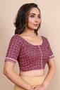 The blouse is meticulously stitched around the hemline and the sides. The firm stitching does not wear away and keeps the blouse in shape.This Blouse is well fitted and offer you optimum comfort.