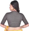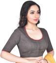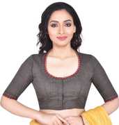 This Dark Grey woven Blouse has South Cotton Fabric, Fashion Neck, Half Sleeves and embroidery at neckline and sleeves. You can team it up with a solid colour saree. Care: Hand Wash in mild detergent