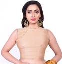 This Beige sleeveless Blouse has Silk Cotton Fabric, Round Neck with embroidered design on back. You can team it up with a solid colour saree.Care: Dry Wash ; do not bleach; dry in shade; medium to hot iron.