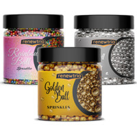 RENEWTRIA Sprinkles pack of 80g EACH ( Golden Ball + Silver Ball + Rainbow ) Sprinkles (240 g, Pack of 3)