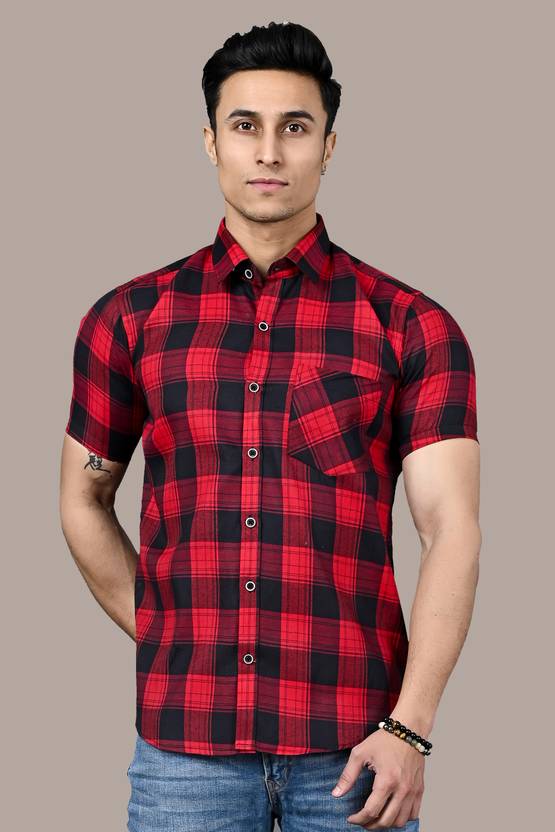 Men Slim Fit Checkered Spread Collar Formal Shirt