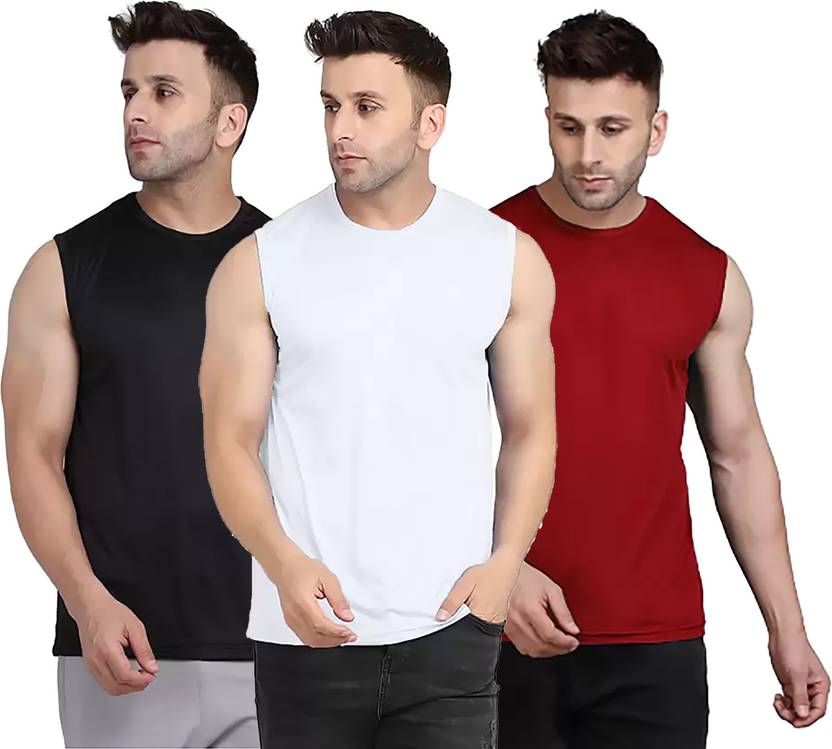 Black And White And Maroon Colour Gym Vest For Men