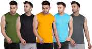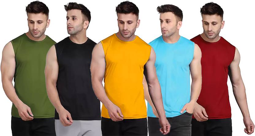 Mehandi And Black And Mustrade And Sky Blue And Maroon Colour Gym Vest For Men