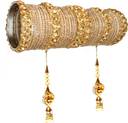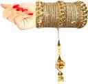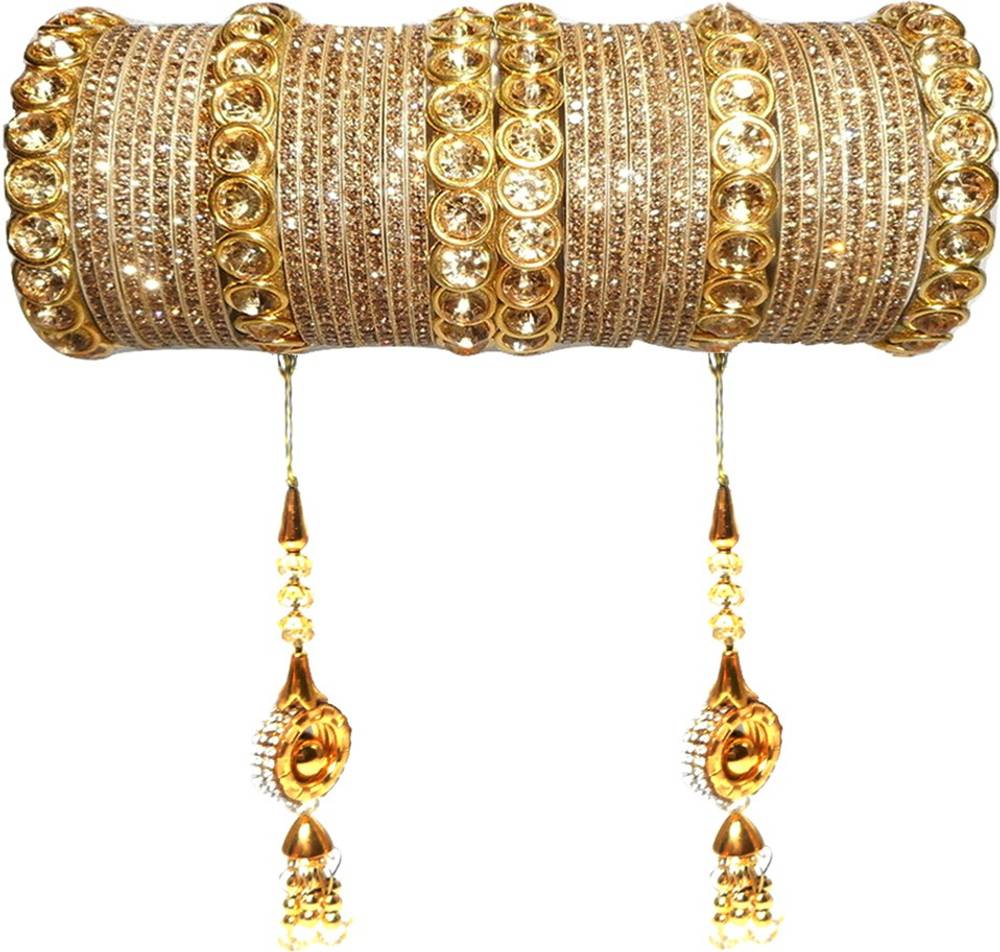 This RENOY Zircon Bridal bangle set with pendant cum chooda made from high quality metal with Pendant .You can use all of the things separately as your choice , Women love jewellery; specially zircon & stone jewellery adore a women. They wear it on different occasion. They have special importance on ring ceremony, wedding and festive time. They can also pair the bangle with their matching dresses,That Shine never get fade,Girls can also use these GLOSSY bangles separately which is in trend,This Bangle set has ROYAL Premium look which makes you different from others because This Royal Bangle set enhance the beauty of your hands..... Make your moment memorable with this range. This Royal jewel features a unique one of a kind traditional emblish with Stone and beautiful shiny zircon finish,and we definitely know that you love it .