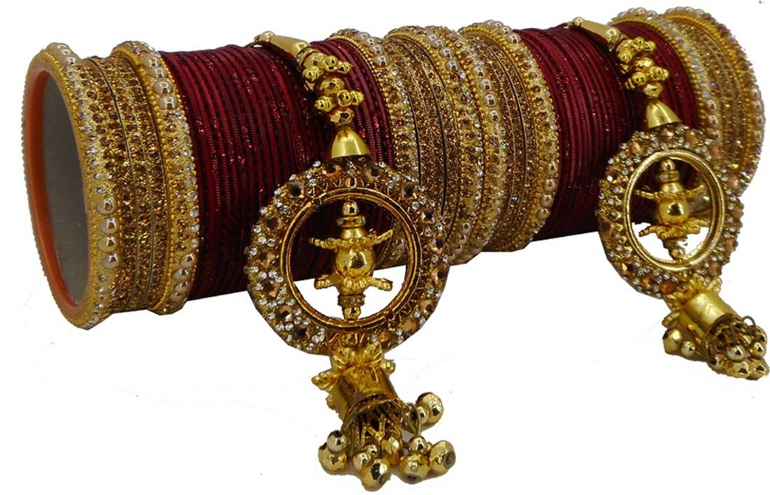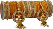 This RENOY Zircon Bridal bangle set made from high quality metal .You can use all of the things separately as your choice , Women love jewellery; specially zircon & stone jewellery adore a women. They wear it on different occasion. They have special importance on ring ceremony, wedding and festive time. They can also pair the bangle with their matching dresses,That Shine never get fade,Girls can also use these GLOSSY bangles separately which is in trend,This Bangle set has ROYAL Premium look which makes you different from others because This Royal Bangle set enhance the beauty of your hands..... Make your moment memorable with this range. This Royal jewel features a unique one of a kind traditional emblish with Stone and beautiful shiny zircon finish,and we definitely know that you love it .