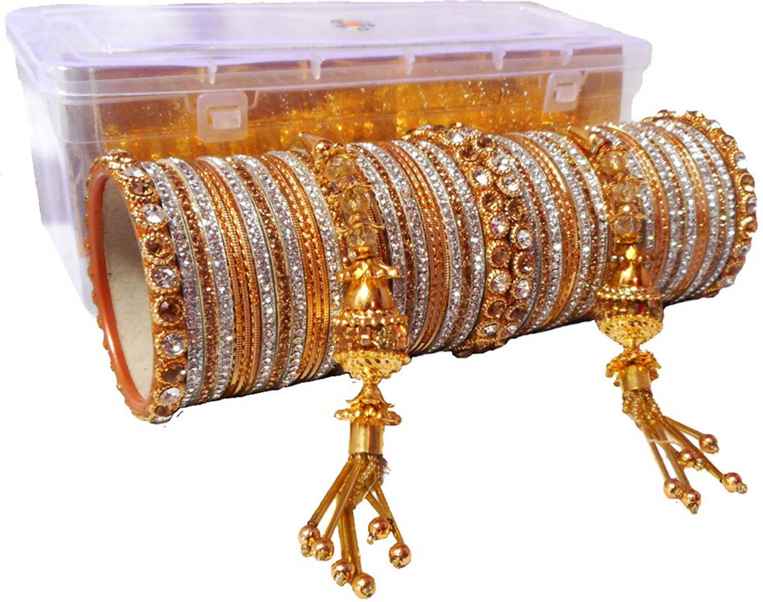 This RENOY Zircon Bridal bangle set with pendant cum chooda made from high quality metal with Pendant .You can use all of the things separately as your choice , Women love jewellery; specially zircon & stone jewellery adore a women. They wear it on different occasion. They have special importance on ring ceremony, wedding and festive time. They can also pair the bangle with their matching dresses,That Shine never get fade,Girls can also use these GLOSSY bangles separately which is in trend,This Bangle set has ROYAL Premium look which makes you different from others because This Royal Bangle set enhance the beauty of your hands..... Make your moment memorable with this range. This Royal jewel features a unique one of a kind traditional emblish with Stone and beautiful shiny zircon finish,and we definitely know that you love it .