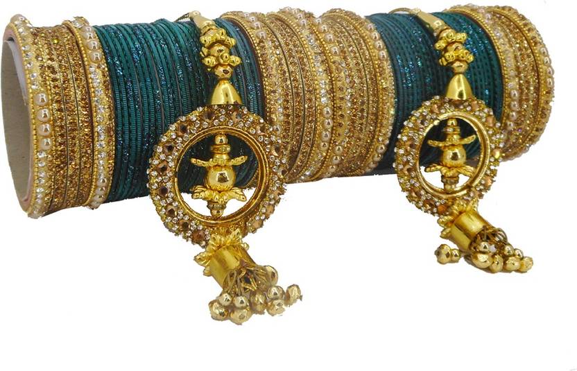 This RENOY Zircon Bridal bangle set made from high quality metal .You can use all of the things separately as your choice , Women love jewellery; specially zircon & stone jewellery adore a women. They wear it on different occasion. They have special importance on ring ceremony, wedding and festive time. They can also pair the bangle with their matching dresses,That Shine never get fade,Girls can also use these GLOSSY bangles separately which is in trend,This Bangle set has ROYAL Premium look which makes you different from others because This Royal Bangle set enhance the beauty of your hands..... Make your moment memorable with this range. This Royal jewel features a unique one of a kind traditional emblish with Stone and beautiful shiny zircon finish,and we definitely know that you love it .