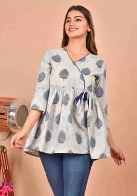 Renqiran Casual Printed Women Grey, Blue Top Reviews