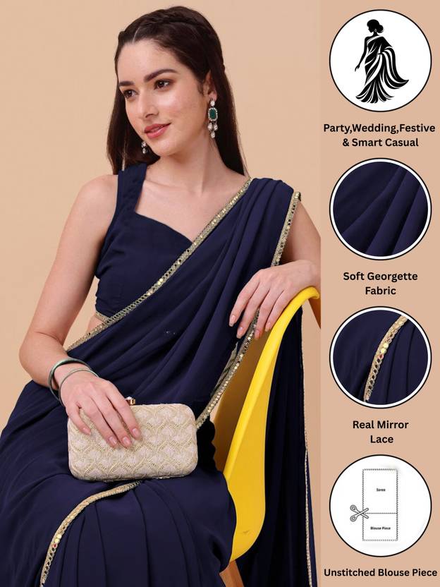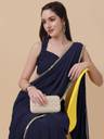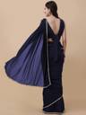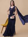 Rensa Solid/Plain Kasavu Georgette Saree (Dark Blue)