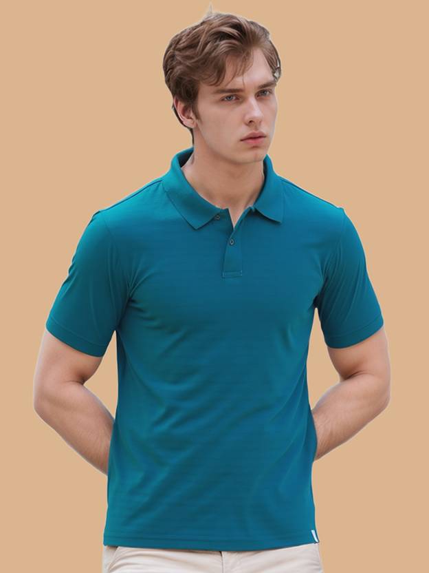 RENUOVO Solid Men Polo Neck Blue T-Shirt