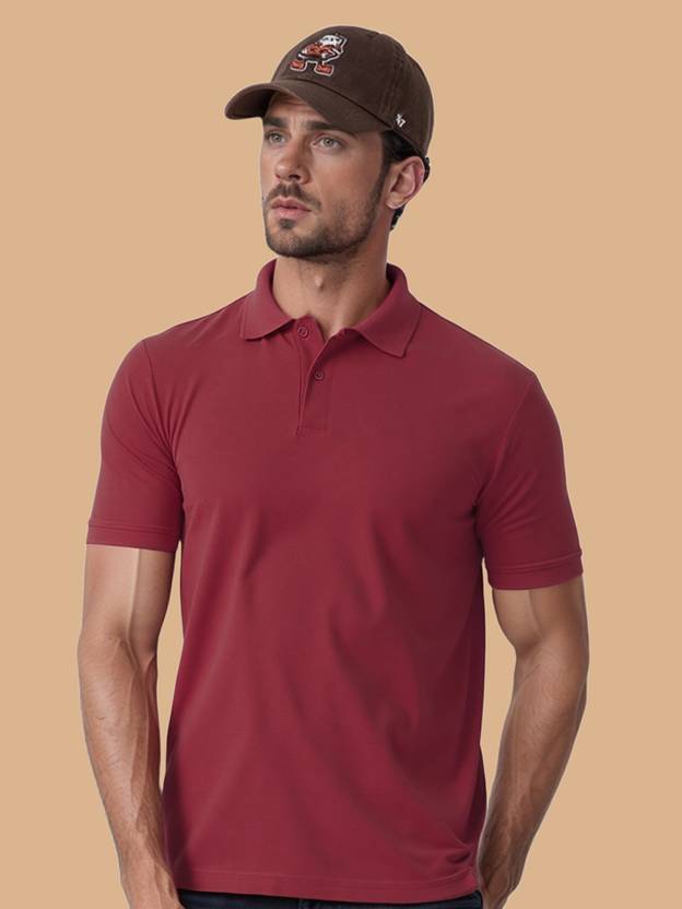 Men Solid Polo Neck Cotton Blend Maroon T-Shirt