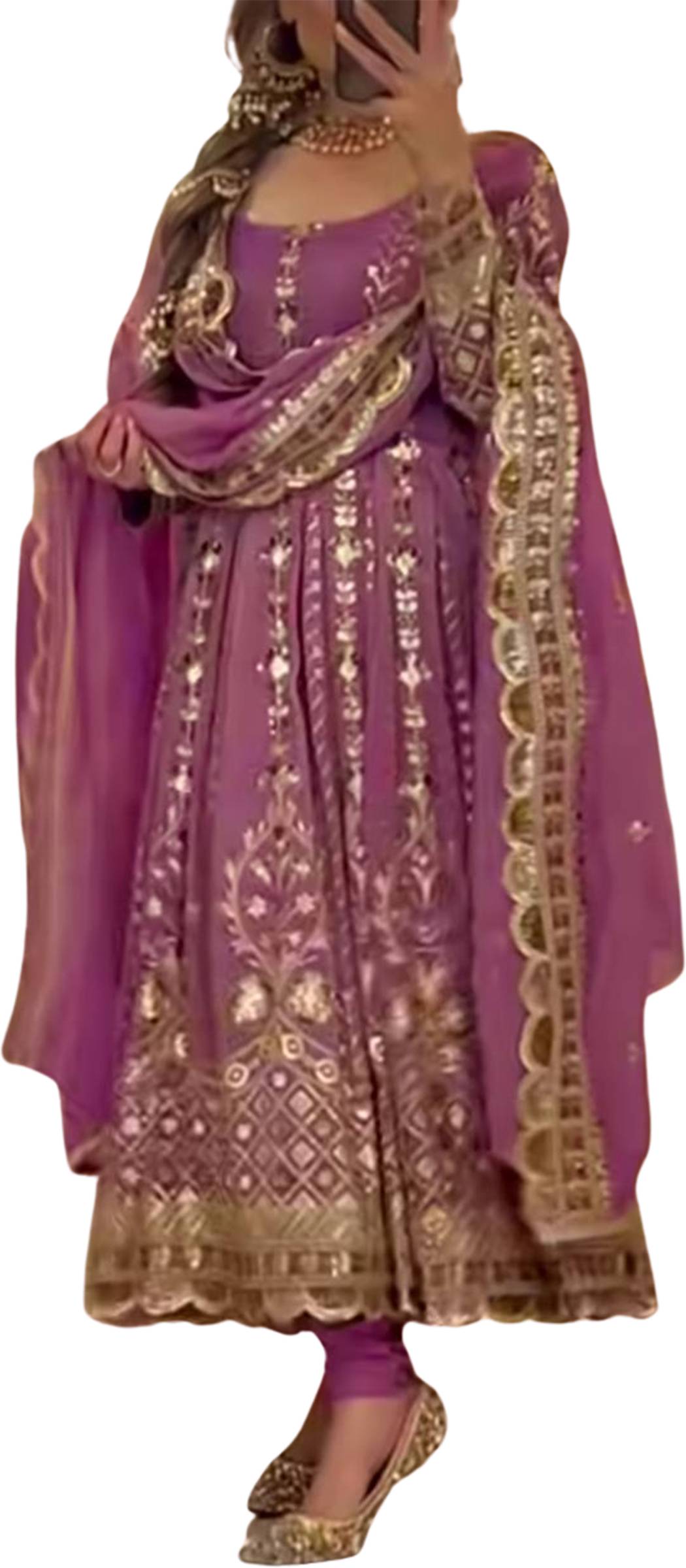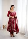 Stylish Wine red Anarkali Suit Set crafted in flowy georgette fabric.Features beautiful floral embroidery with matching dupatta.Ideal for weddings, festive occasions, and party wear.