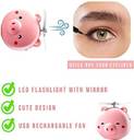 Renyke Mini Carton Make Up Mirror with LED Lights USB LED Cosmetic Mirror Fan