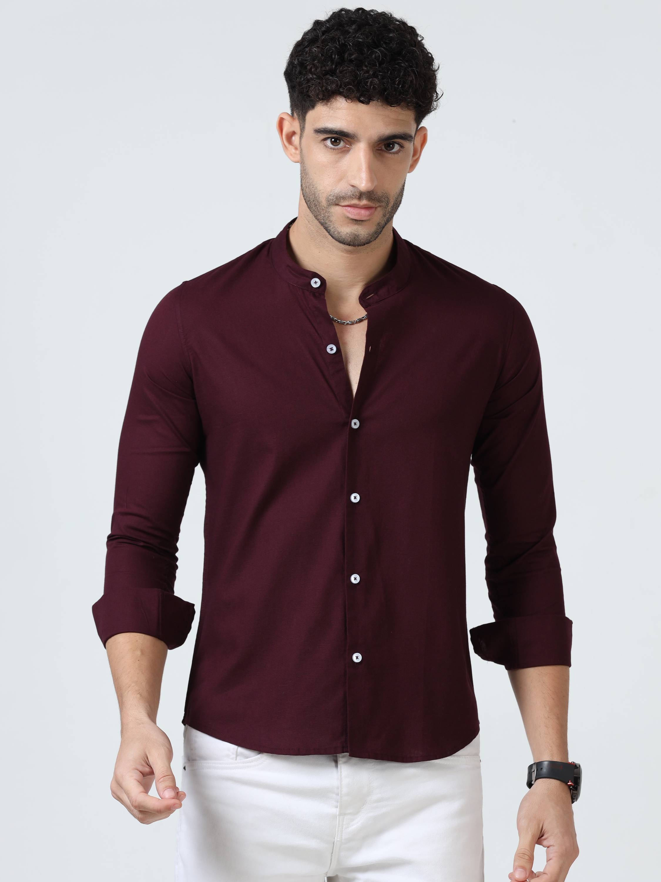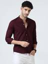 Men Regular Fit Washed Collarless Collar Casual Shirt