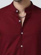 A Chinese collar full-sleeve shirt for men combines traditional elegance with contemporary style. The Chinese collar, also known as a mandarin collar, stands upright and adds a sophisticated touch to the shirt, eschewing the traditional collar flaps for a clean, minimalist look. Made from high-quality fabric, such as crisp cotton or a luxurious blend, this shirt offers both comfort and durability. The full sleeves provide a classic silhouette, making it versatile enough to be dressed up for formal occasions or dressed down for casual wear. The absence of a standard collar and the refined tailoring make this shirt a distinctive choice, blending cultural heritage with modern fashion sensibilities.