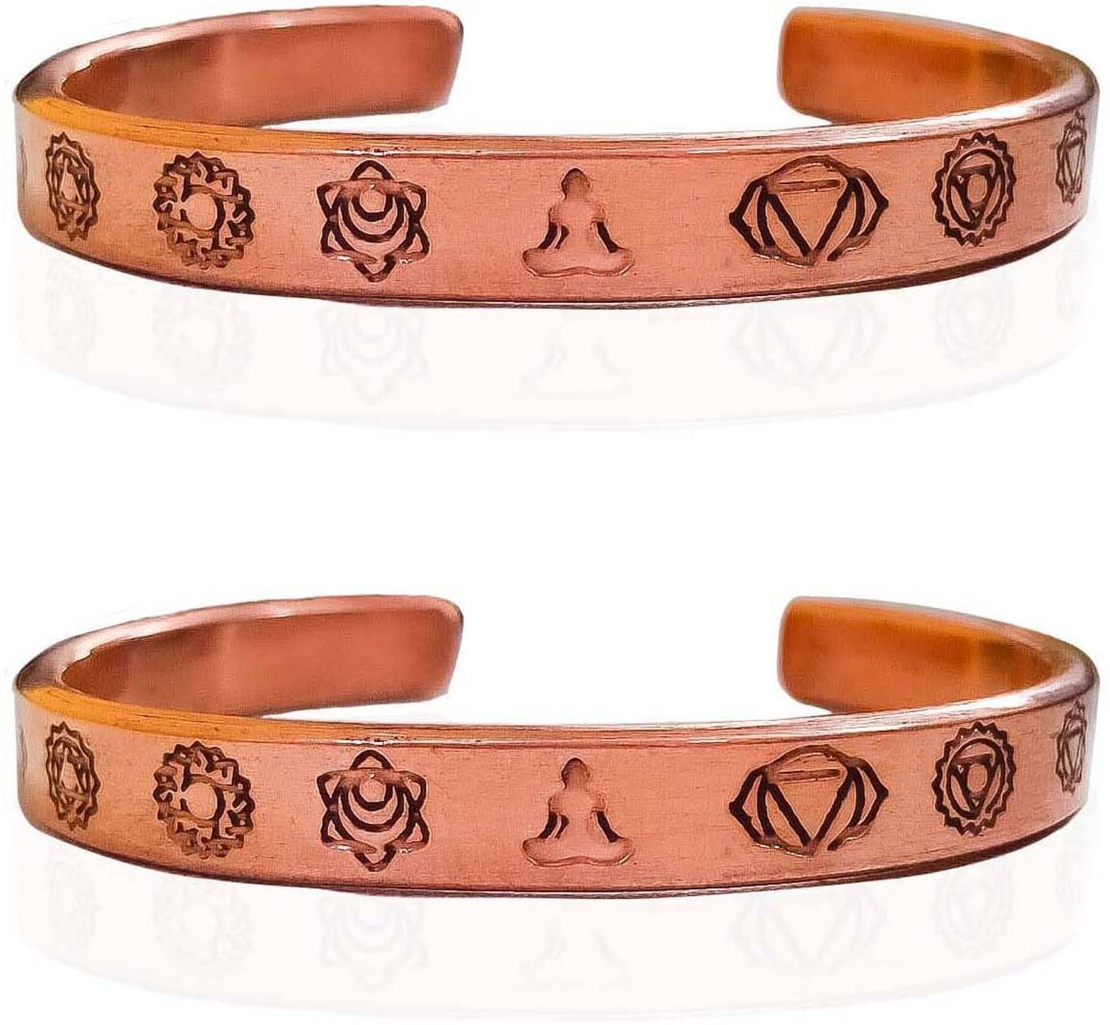 7 Chakra symbol HEAVY Copper Adjustable Kada is an auspicious product for quality meditation. Its effectiveness is further increased by copper where all the symbols of the 7 chakras are carved. Made of