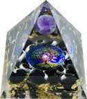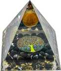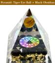 RESHAMM LIFE CARE Pre-Charged Crystal Tiger Eye Ball Black Obsidian 7 Chakra Pyramid in Gift box Decorative Showpiece - 11 cm (Crystal, Stone, Yellow)