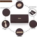 Main Compartments: 3 main pockets for phone and daily essentials Spacious pockets to accommodate a variety of phone sizes and daily necessities Convenient organization for easy access to essentials Dedicated currency notes pocket Secure and easily accessible compartment for bills and currency Ensures organized storage of different denominations Zipper Pockets: 3 zipper pockets for coins Separate compartments with zipper closures to prevent coins from falling out Helps in keeping loose change organized and easily retrievable Card Slots: 6 card slots Designed to hold credit cards, IDs, and other essential cards Provides ample space for organizing and carrying multiple cards Size: Dimensions: 8.3 x 4.5 x 1.5 inches Compact yet spacious design for easy portability Fits comfortably in handbags or can be used as a standalone clutch