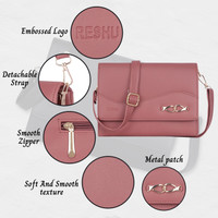 Reshu Pink Sling Bag Cross-Body With Adjustable Shoulder Strap & 3 pockets