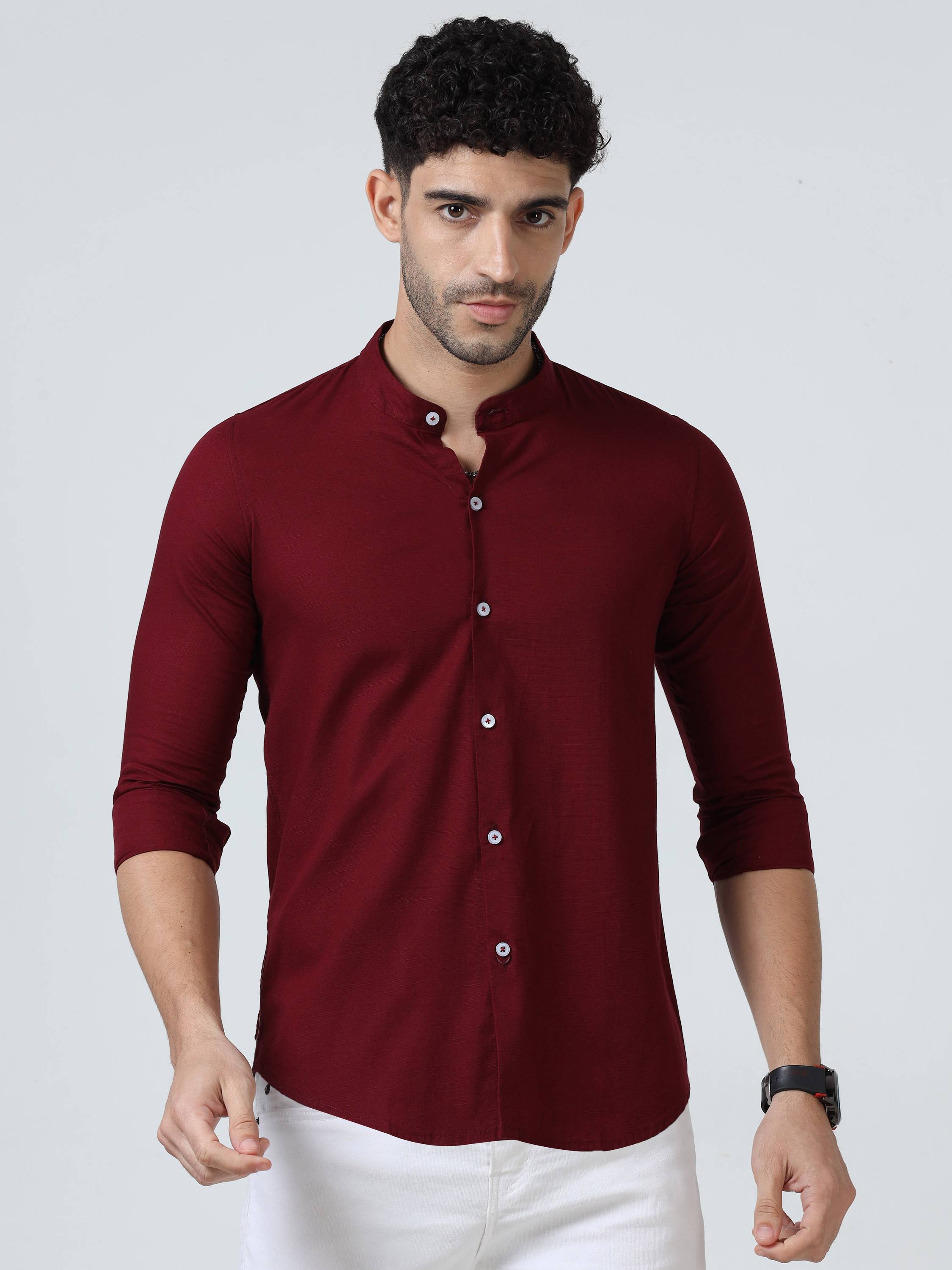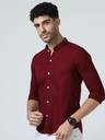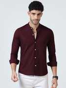 RESERIO Men Regular Fit Solid Mandarin Collar Casual Shirt