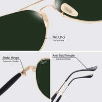 Meticulously designed, these aviator sunglasses can enhance your style and ensure enduring durability. Crafted with precision, these sunglasses feature a robust build, incorporating a TAC lens with UV400 protection, a metal hinge, and an ergonomically designed anti-skid temple. And, seamlessly blending functionality with fashion, these sunglasses are a testament to exceptional craftsmanship.