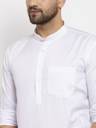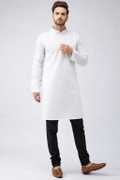 The kurta features a straight fit that creates a sharp, structured silhouette, complemented by a mandarin collar and a clean buttoned placket that reflect timeless craftsmanship with contemporary design sensibilities. Its knee-length profile with full sleeves blends tradition with modern style, while the matching pyjama is designed for ease of movement and a relaxed yet polished look, completing the ensemble with effortless sophistication.