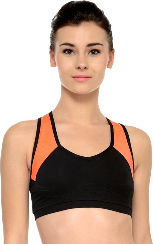 Restless Black Orange Cotton Sports Bra RS I C 06H