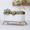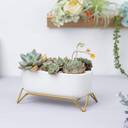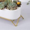 retail therapy Oval Shaped Mini Succulent Pot with Metal Base, Ceramic White Plant Pot Plant Container Set (Clay)