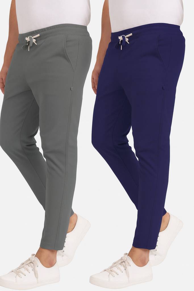 Retailmart Pack of 2 Men Solid Blue, Grey Track Pants