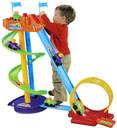 Children love playing with cars. This is a fun to play roller coaster car set for kids. This set includes two cars and a set of tracks. There is a spiral track, a slide and a loop. A car can be positioned on top and a button push will let the car go zooming on the slide. Hours of fun, this set will keep the kids engaged. This set is easy to assemble but requires an adult for assembly.